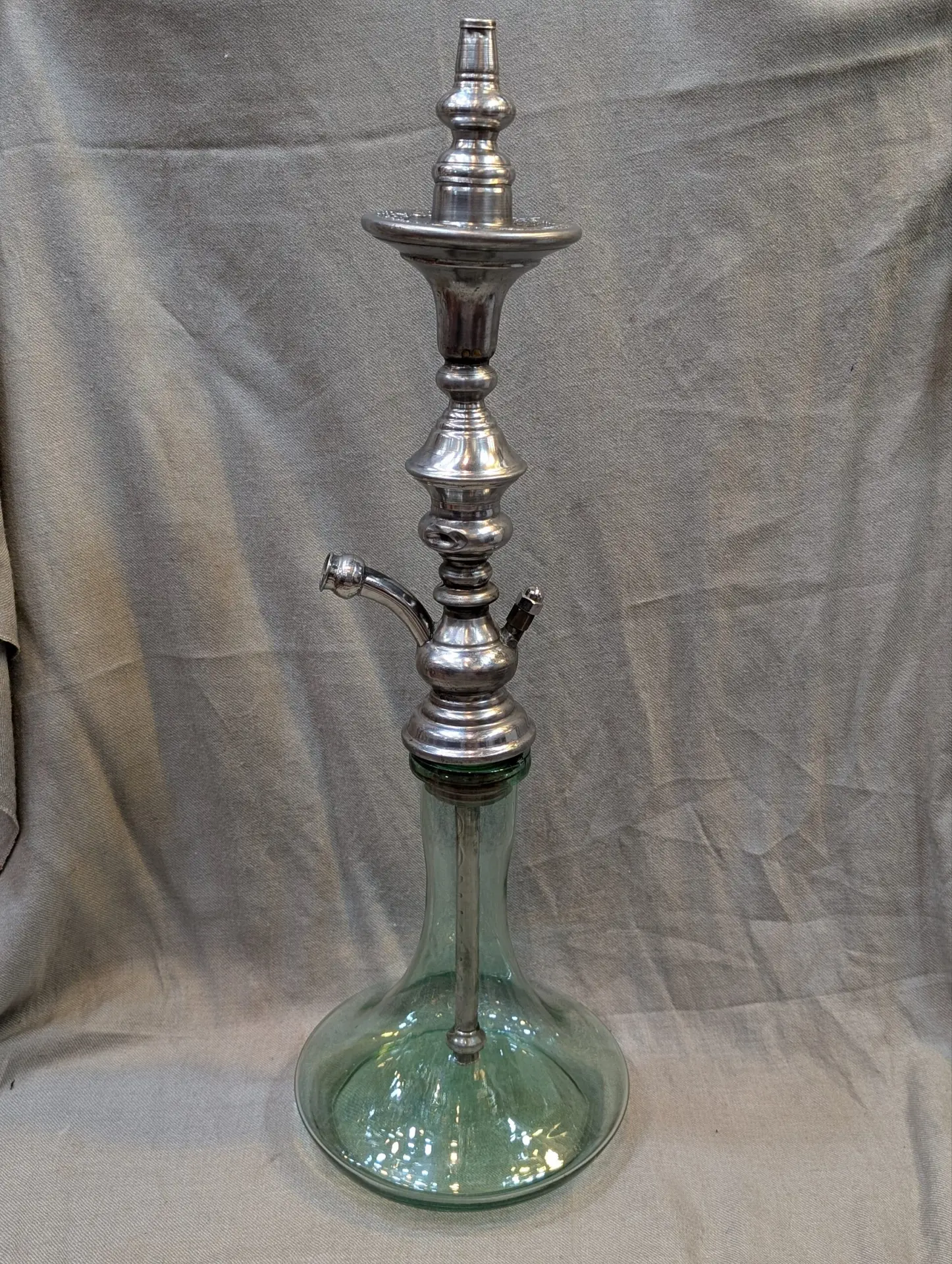 Complete set of Khalil Mamon hookah. Includes rod, base, pipe, chilum, rubbers, and box to pack.